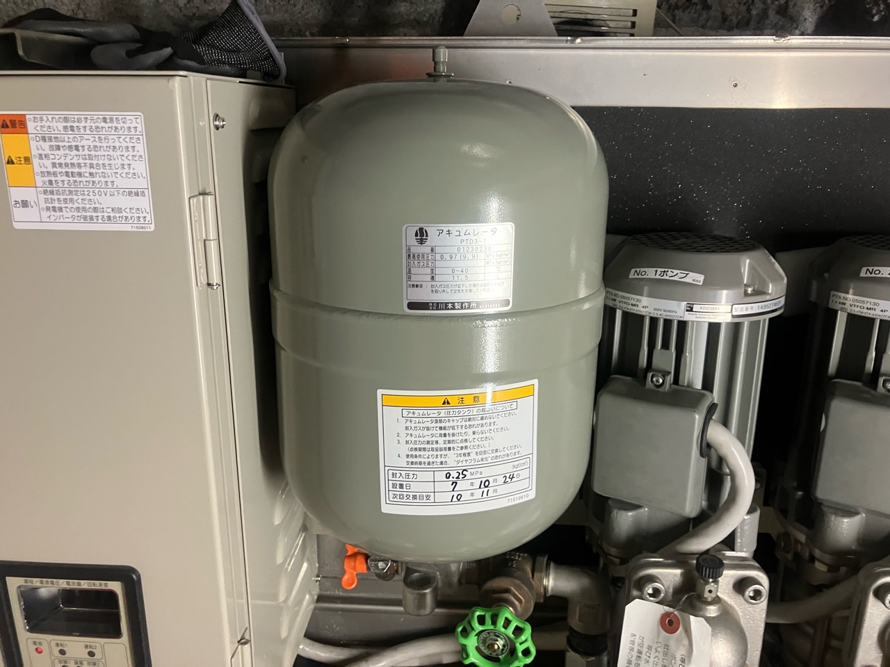お客様から部品交換の見積もり依頼があり、ご依頼を受けました。 交換したのは、圧力タンク、逆流防止器です。