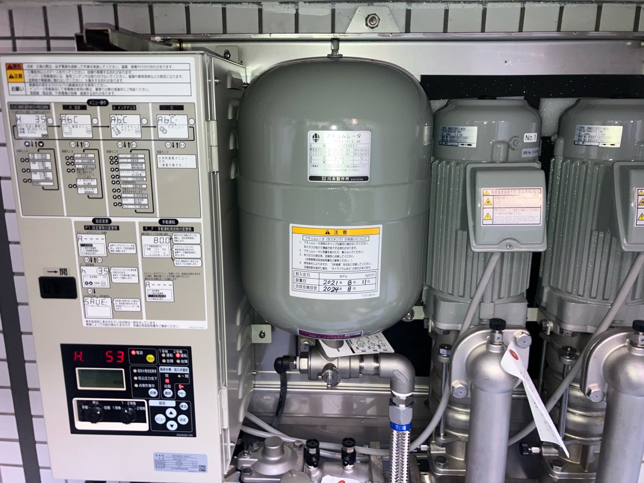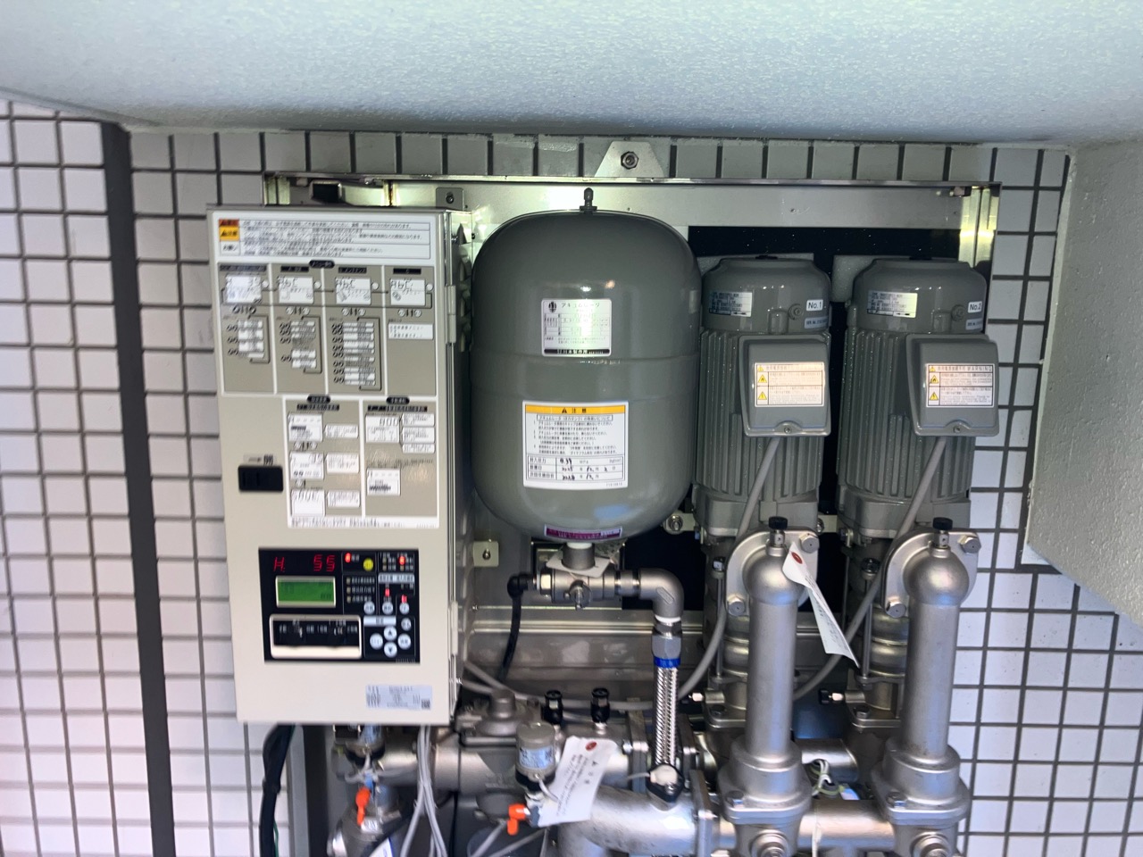 | 工事内容 | 東京都江戸川区 Fマンション 増圧ポンプ圧力タンク交換工事、排水ポンプ更新2カ所 |