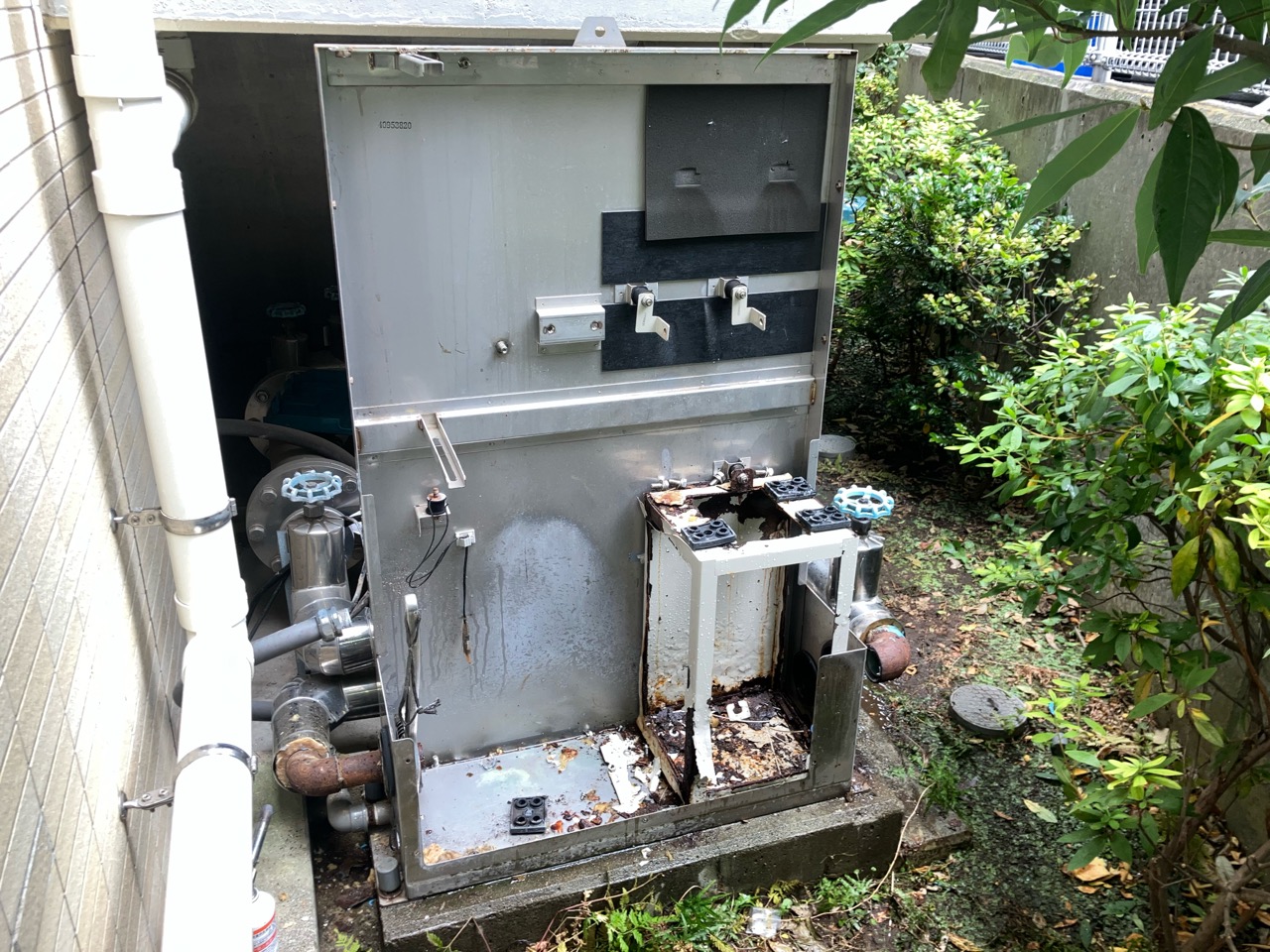 管理組合理事の方から直接お問い合わせがあり、 セキュリティ会社からポンプが故障していると言われたので、更新見積もりが欲しいという内容でした。 20年経過しており、№2のポンプが停止している状態でした。