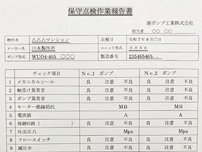 工事終了後、1週間から10日で写真報告書をご提出。これをしっかり次のポンプ交換まで保管していただきます。