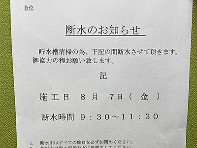 ⑥入居者へのお知らせ、断水工事などの事前作業